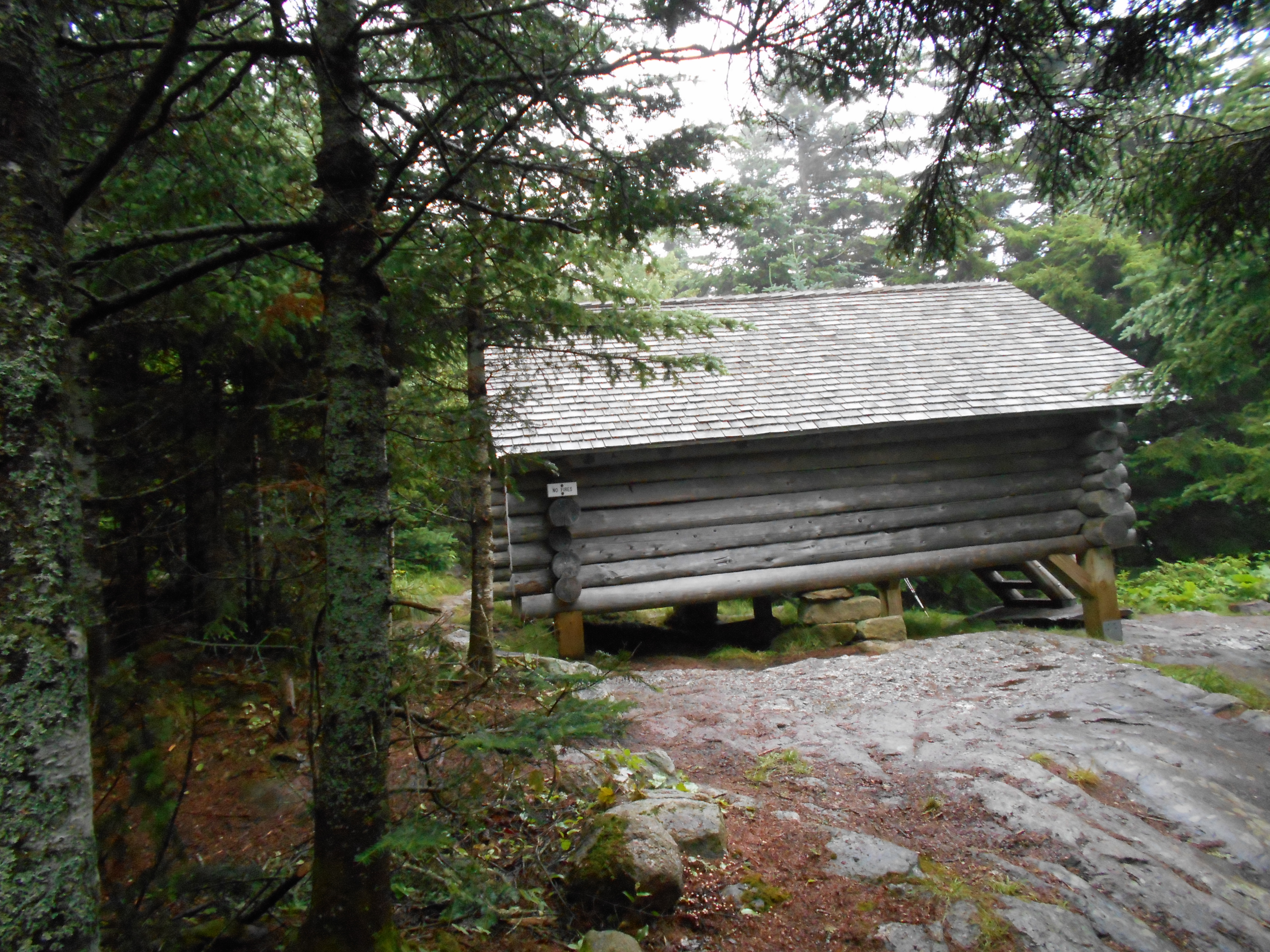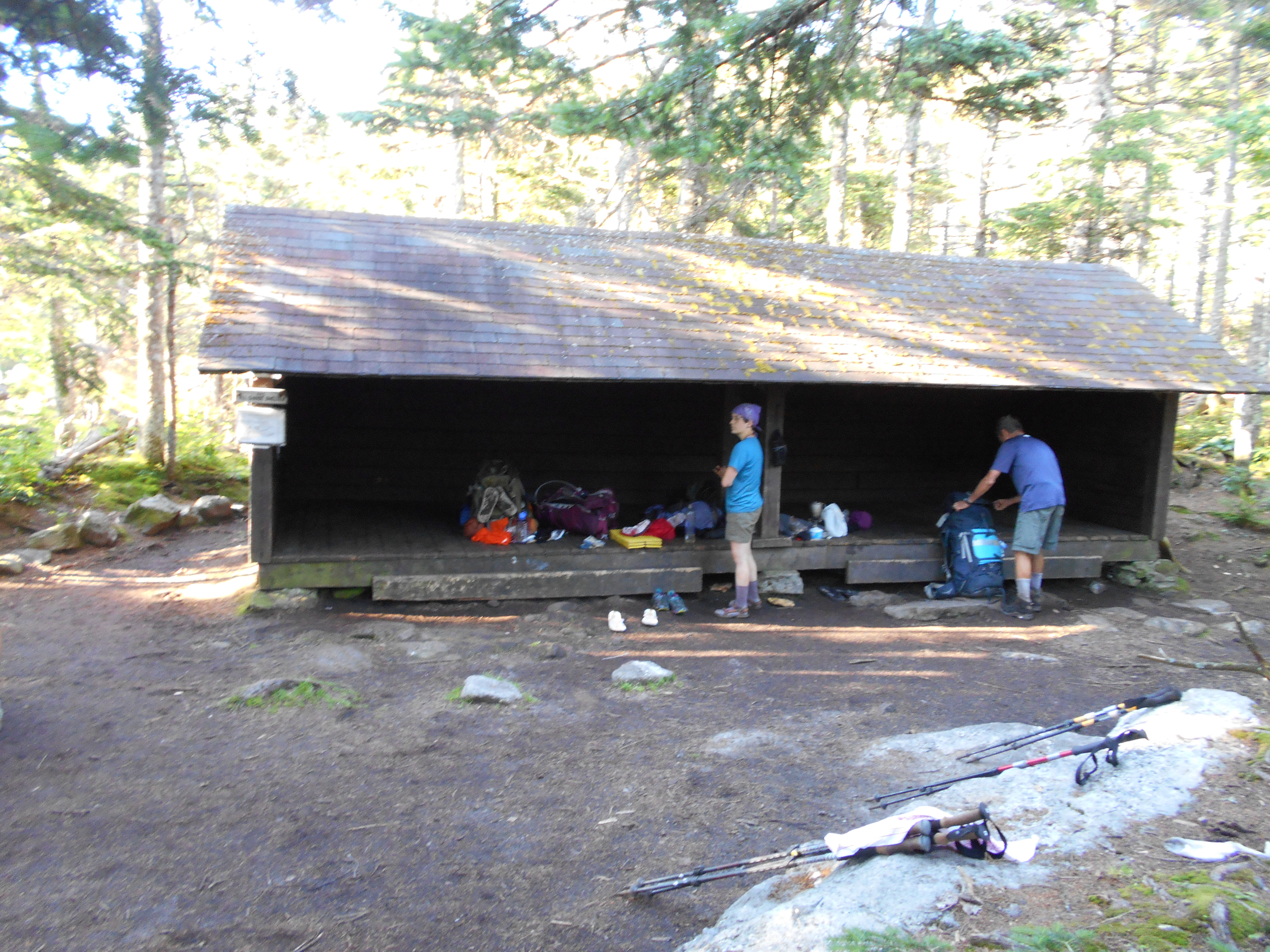 the plan was to go to full goose shelter some 4.5 miles beyond but arrived here at 3 after hiking 7 hours (including breaks) and just knew I would not reach it in good time so I stopped. hiking went from easy to rediculously impossible. on carlos col I backtracked three times saying "they just wouldnt make hikers do that" but I was wrong! dont know if the morning wetness (rained all night) sucked the energy out if me, or I didn't sleep well last night, or if it was something else, but the miles were just coming very slow today. hate to loose 50+ right befor mahoosec notch and arm, but I cant go further today....I am just wiped. Time for a nap before dinner.