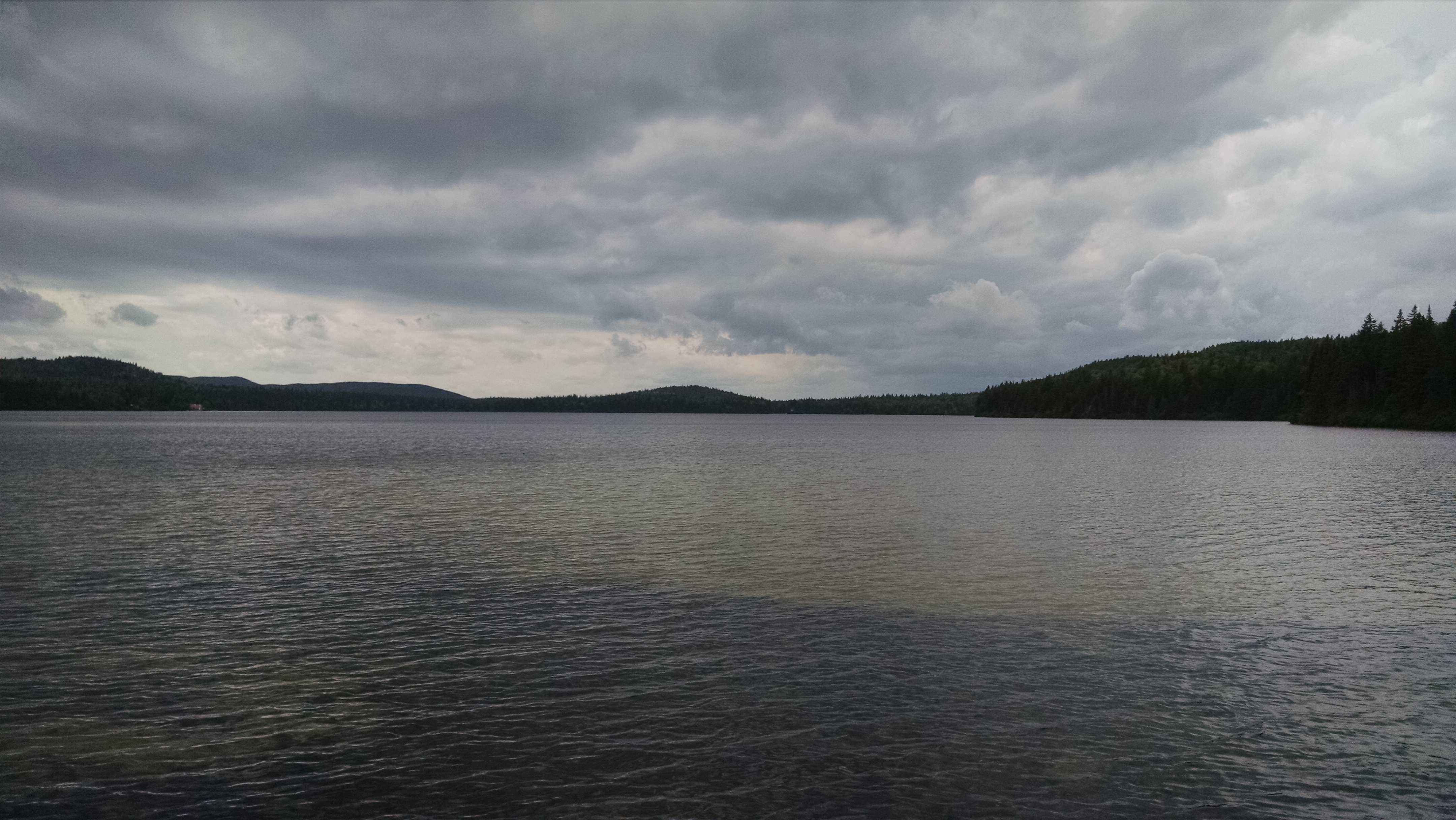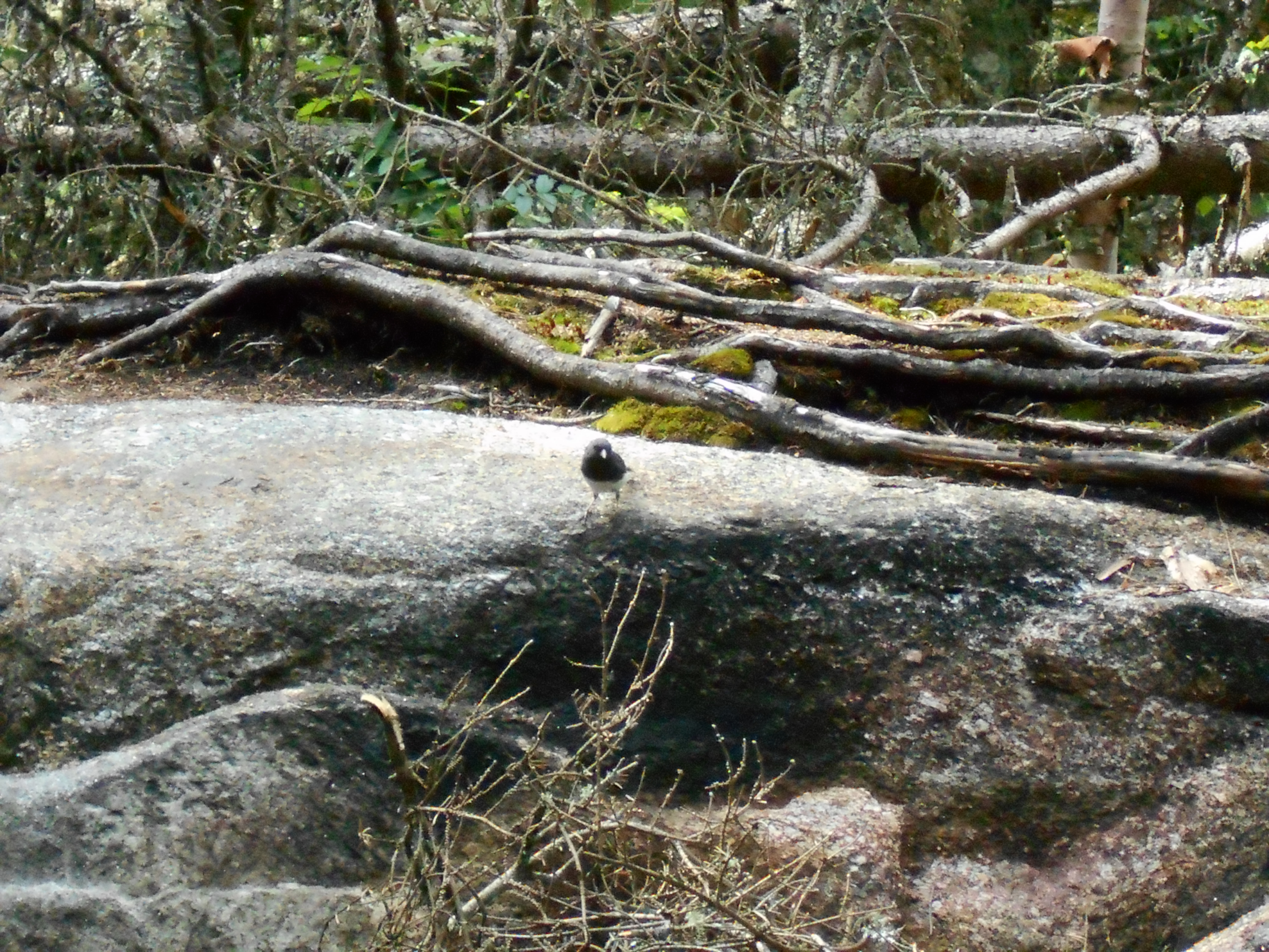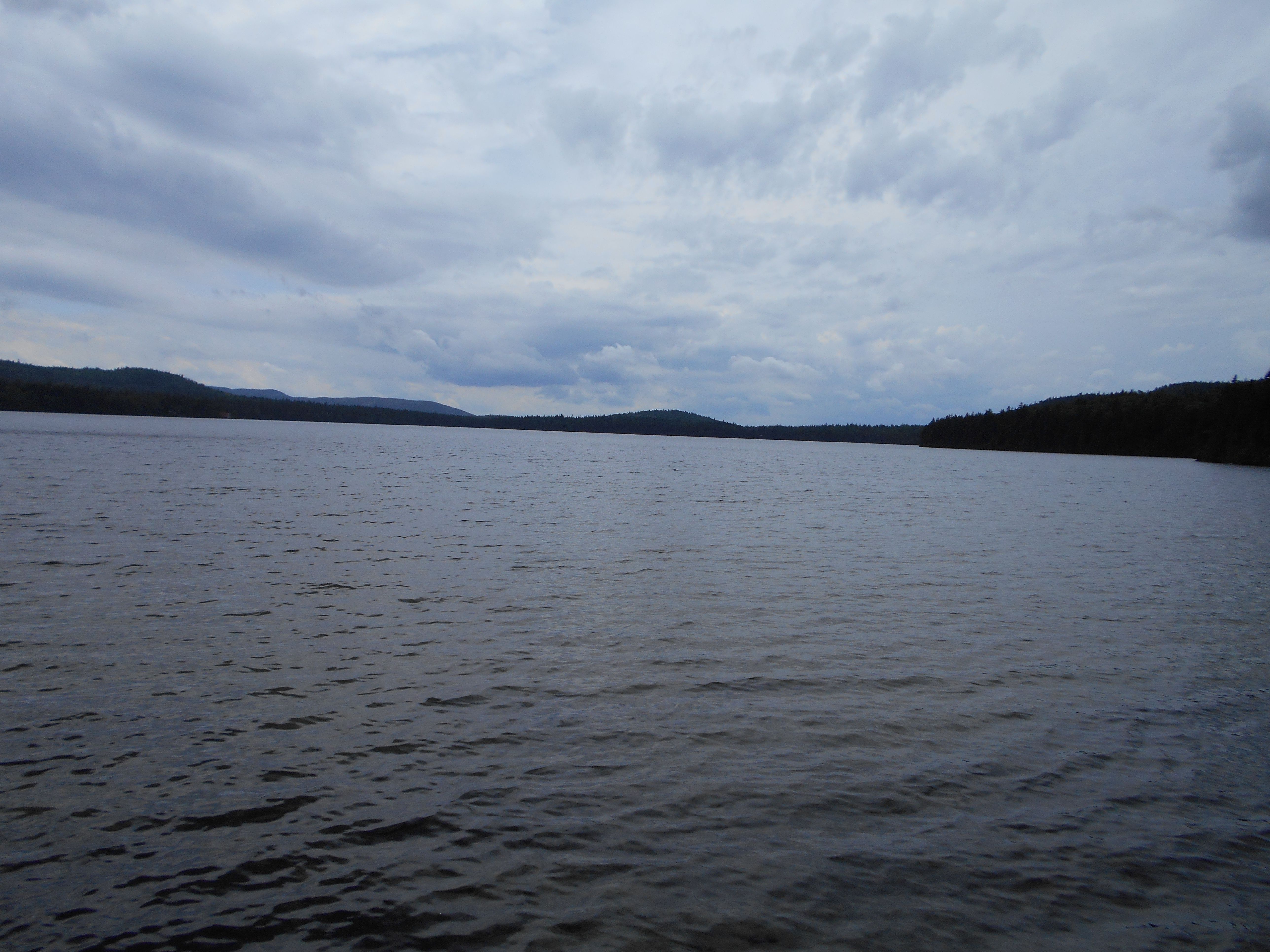 did the normal routine this morning and a few minutes befor being ready we got a few drops of rain, but that was it. hike was fairly easy, but still a lot of ups and downs. made good time and reached the Sabbath Day pond swim spot about 1pm. nice sandy beach and cool refreashing water.....I just dove in. had to get moving pretty quick since a storm was moving in. got to the shelter about a half hour latter and got a spot in the shelter, got water, and now just sitting in the shelter (in the dark, thanks to the storm) waiting for the worst of the storm to hit. by the look of the sky, and the thunder, we are in for a doosy.