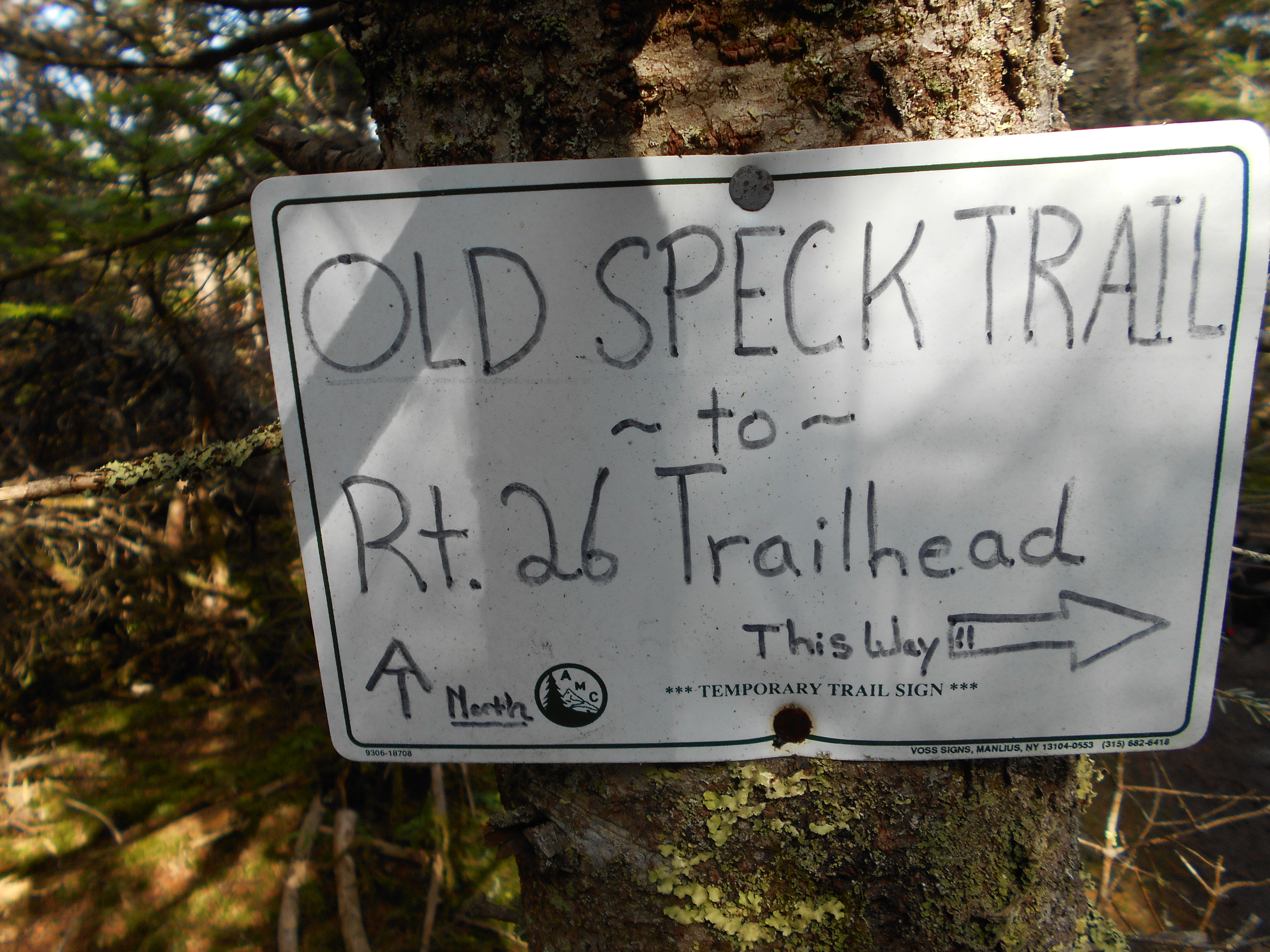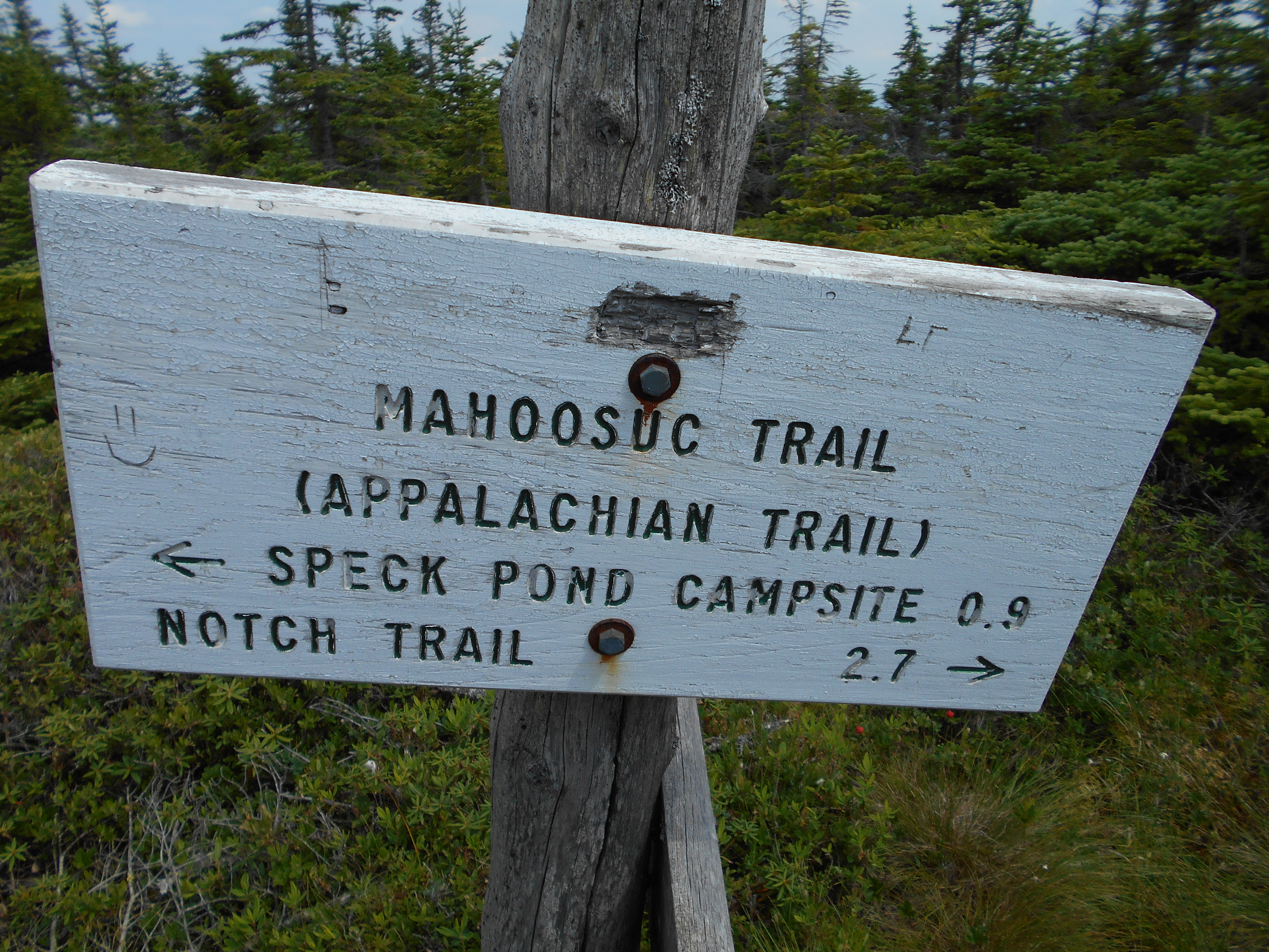 Speck Pond Trail, +AMC Speck Pond Shelter and Campsite (3,500')?last water for the next 3.5 miles north......5.2mS; 6.9mN