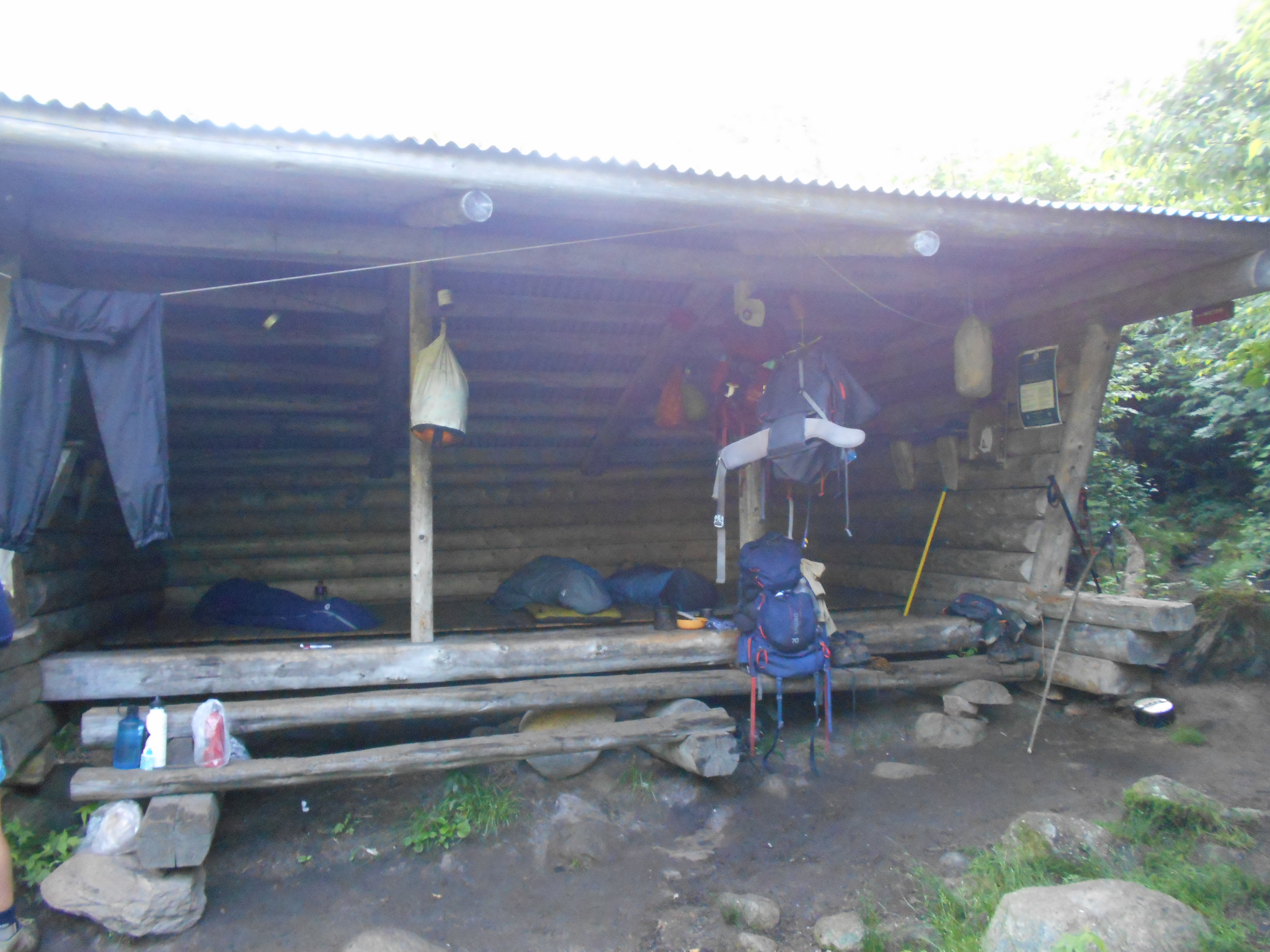woke to annother excelent breakfast at the hostal but then it was time to pack up and leave. it rained most of the night so the trail was wet and soggy and socked in with fog. was able to make good time on the flats and uphills, but downhills were killing my knees still. backpack feels much better with the new adjustments and the new boots are doing ok. did fall two times today due to wet rocks. first no dammage, but the second I did do something to my 2nd finger on my left hand. it is bent at the first nuckle and will not streighten out. no pain and no sign of a break. luckly at the shelter there is a physiotheripist who said that if I put it in a splint for 4 to six weeks it should be ok, but leaving it unsplinted could leave it bent permanently.
