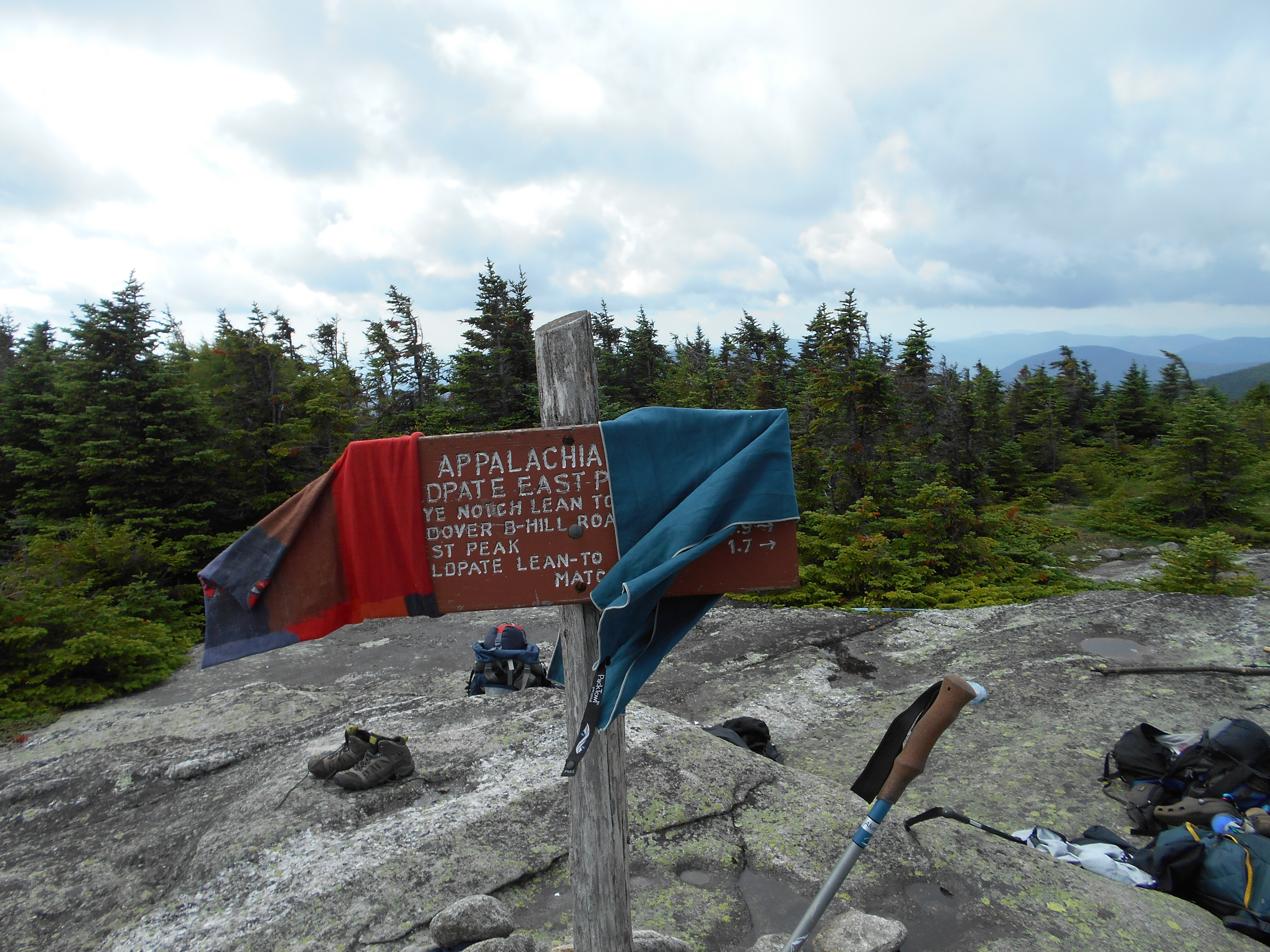 hike this morning was hard up baldplate west and east but great views. hike got much easier after that and I was at the stream befor I knew it. took a quick bath then on the to road crossing (east b hill rd). hitched in (first truck stopped) and I was in town before I knew it. staying at pine ellis lodge. also had a reunion with 50+ who was here (he came into andover via the 2nd road crossing, I came in the first). so we swapped stories from the trail.